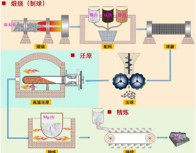 • 皮江法炼镁工艺 江苏炬烽热能科技有限公司采用皮江法炼镁工艺:将煅烧后的白云石、硅铁与萤石按一定的比例磨粉、制球,...